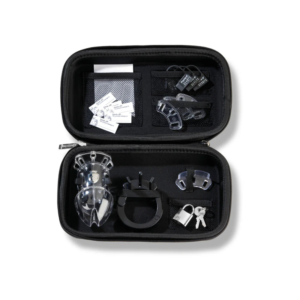 The Pubic Enemy No 1 is a neat and transparent cock cage with e-stim function: He keeps a boisterous willy pent up under lock and key so that he can't get stiff until the mistress, or the master, comes with the key and lets him out. With the conducting surfaces, left and right, the prisoner can be treated with tingles, twitches or pulsations in precisely the intensity he deserves. Because his conductive surfaces can be taken out in no time at all, this chastity belt for wayward gentlemen is perfect even for those who haven't yet discovered e-stim. And if a prisoner gets too cocky later, the conductivity can easily be restored.IMPORTANT NOTE! Mystim Tension Lover Digital Nerv Stimulator is required for this item.